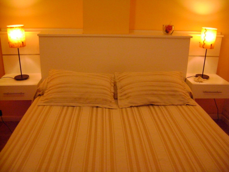 Dormitorio con aire acondicionado, cama matrimonial con colchon de resortes y somier.